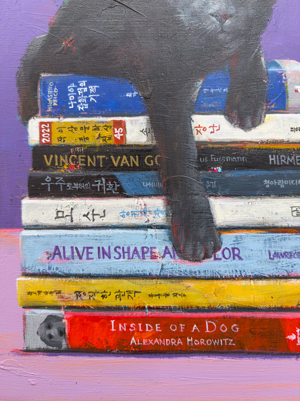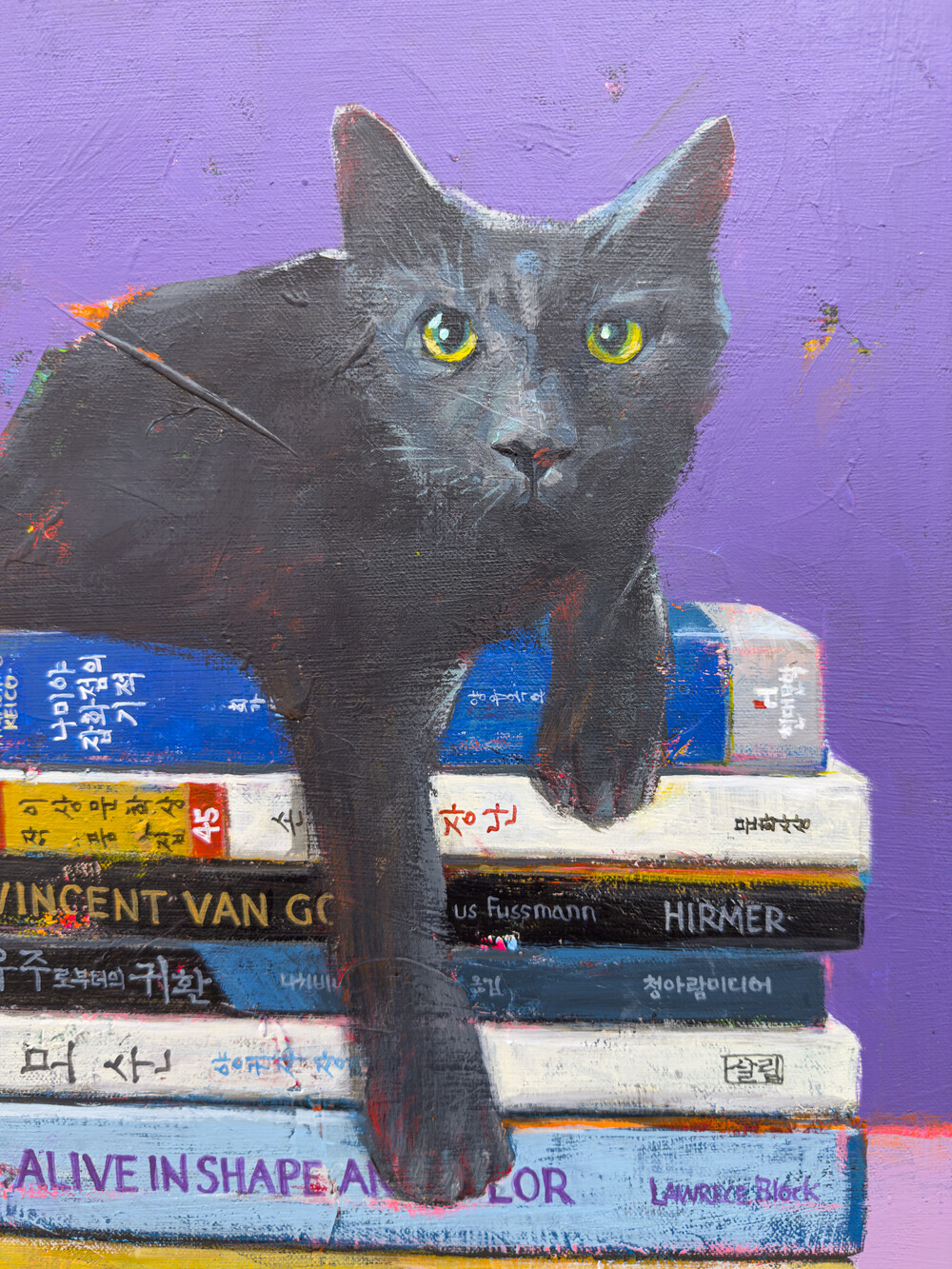 작업에 등장하는 가족, 평안한 거실, 오래된 골목길, 식물, 고양이, 오래된 장난감 등은 오랜 시간 동안 작가와 함께하며 위로와 위안을 주었던 기억, 사물 들이다.