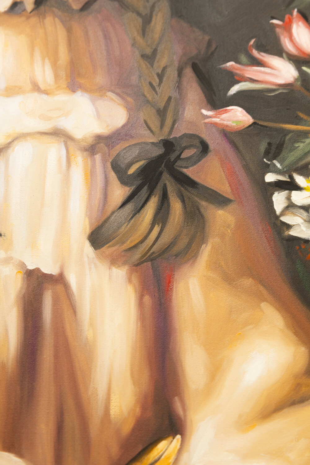 제이드 킴 작가의 작품 속 중심에 자리한 ”MIN“은 아내의 어린 시절에서 영감을 받아 탄생한 캐릭터로, 함께 나눈 대화와 꿈, 아내가 좋아했던 것들이 자연스럽게 녹아 있습니다. ”MIN“은 단순한 인물이 아니라, 작가가 아내와 공유한 시간과 기억, 그리고 아내의 따스함을 표현한 존재로 등장합니다. 몽환적이고 생동감 넘치는 배경 속에서 ”MIN“은 작가에게 평화롭고 아늑한 안식처를 상징하며 작품에 담긴 풍부한 색감과 디테일은 사랑과 존중의 깊이를 고스란히 보여줍니다.