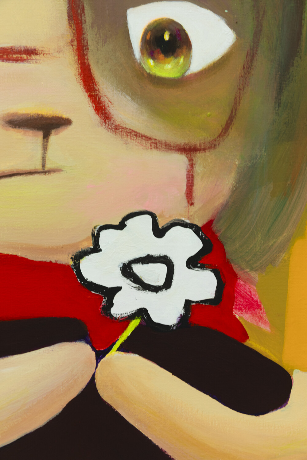 〈Can I?〉는 소심함과 용기를 동시에 담고 있는 작품입니다. 무엇인가를 말하려다 망설이는 순간, 감정을 드러낼까 숨길까 고민하는 그 찰나의 떨림. 모자는 그런 감정을 가리는 동시에 감싸는 장치처럼 보입니다. 들키고 싶지 않은 마음과 동시에 꼭 전하고 싶은 진심, 그 두 감정이 공존하는 눈빛입니다.