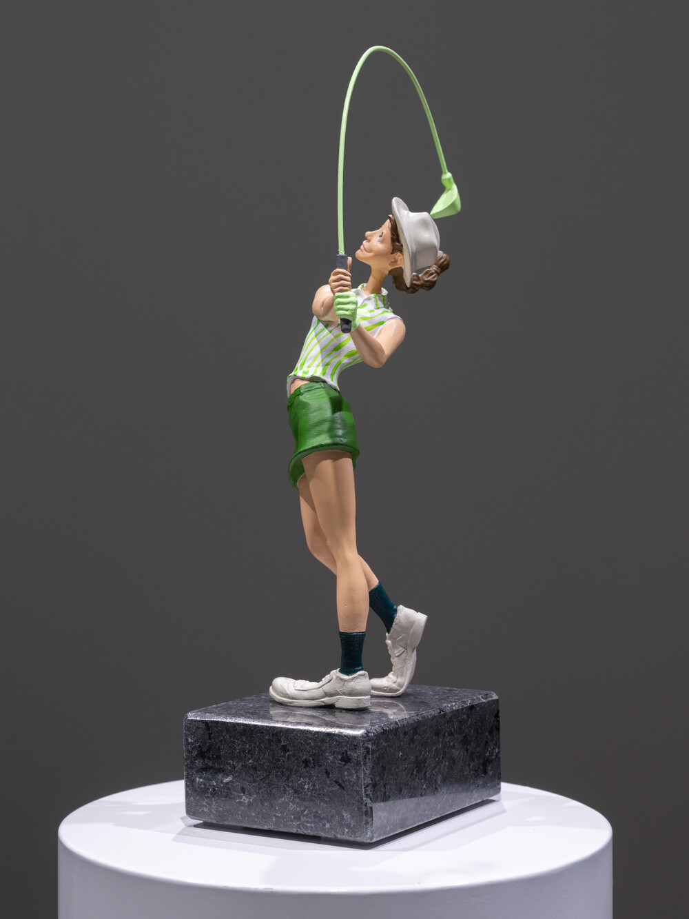 김경민 작가의 이번 작품 ”Delicate Moment“는 필드에서 짜릿한 손맛이 느껴지는 절묘한 타이밍, 스윙의 여운이 남아 있는 순간을 재치 있게 포착한 작업입니다.