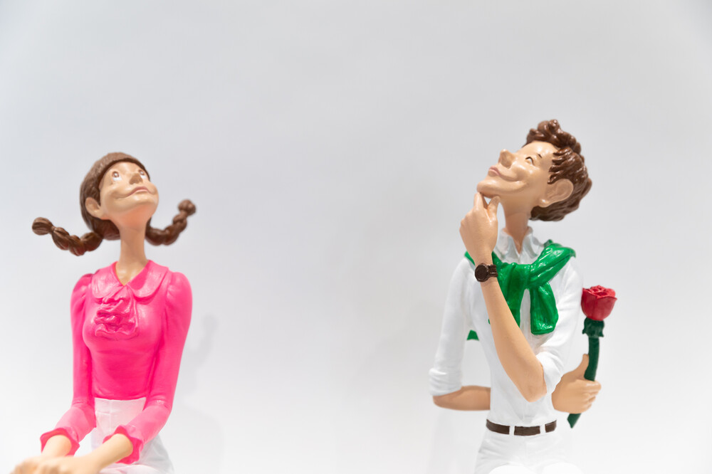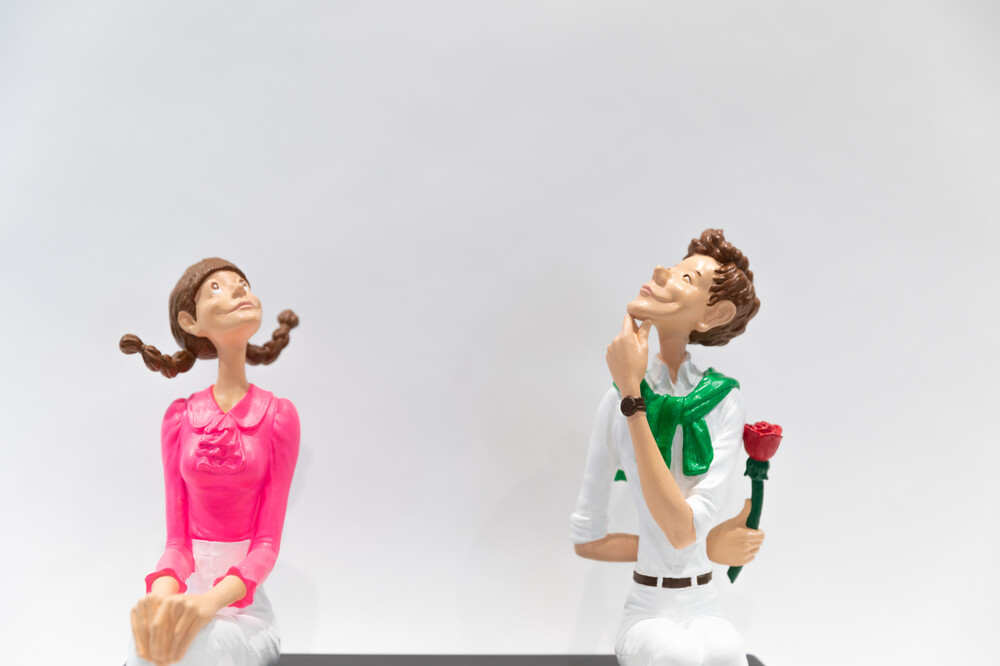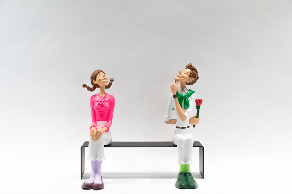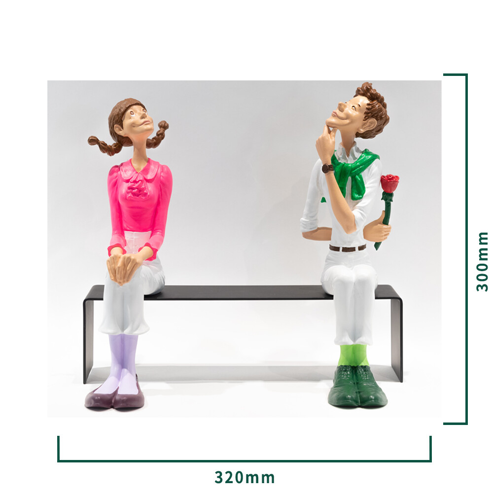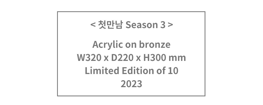 김경민 작가님의 대표작 < 첫 만남 > 시리즈의 세번째 작품입니다. 긴장되고 설레이는 첫 만남 속에 언제 가까이 다가갈지, 어떤 말을 해야할지, 등 뒤에 숨긴 꽃은 언제 줄지 를 고민하며 서로를 향해 조심스러워하는 두 남녀의 사랑스러운 모습이 돋보이는 작품입니다.