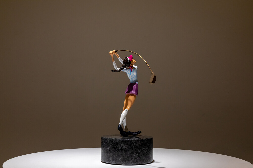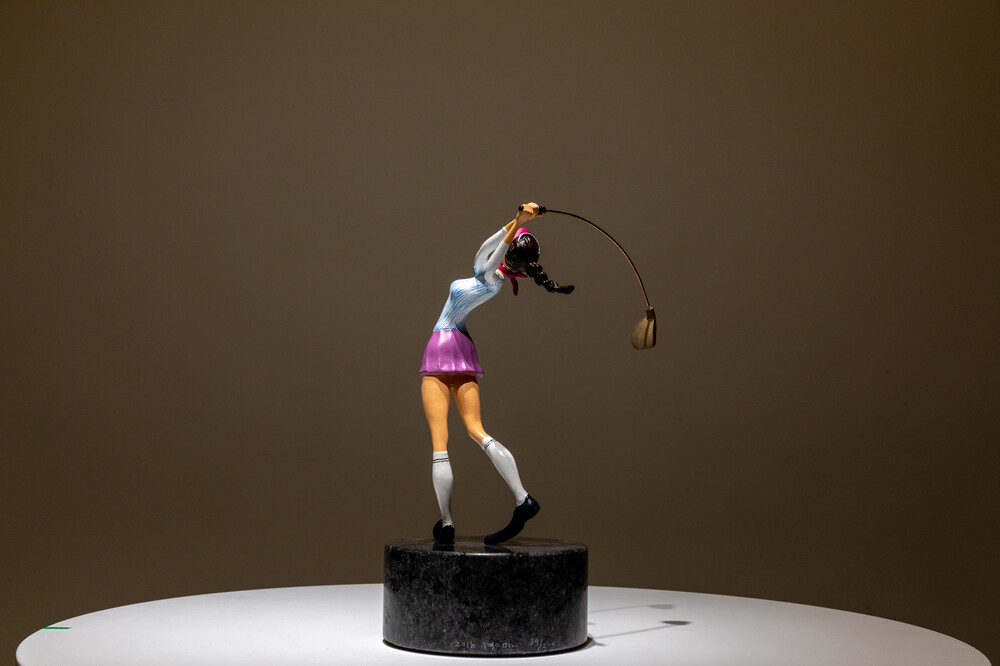 사람, 가족, 일상의 행복한 순간들을 표현하는 김경민 작가의 골프트로피 예술작품입니다.