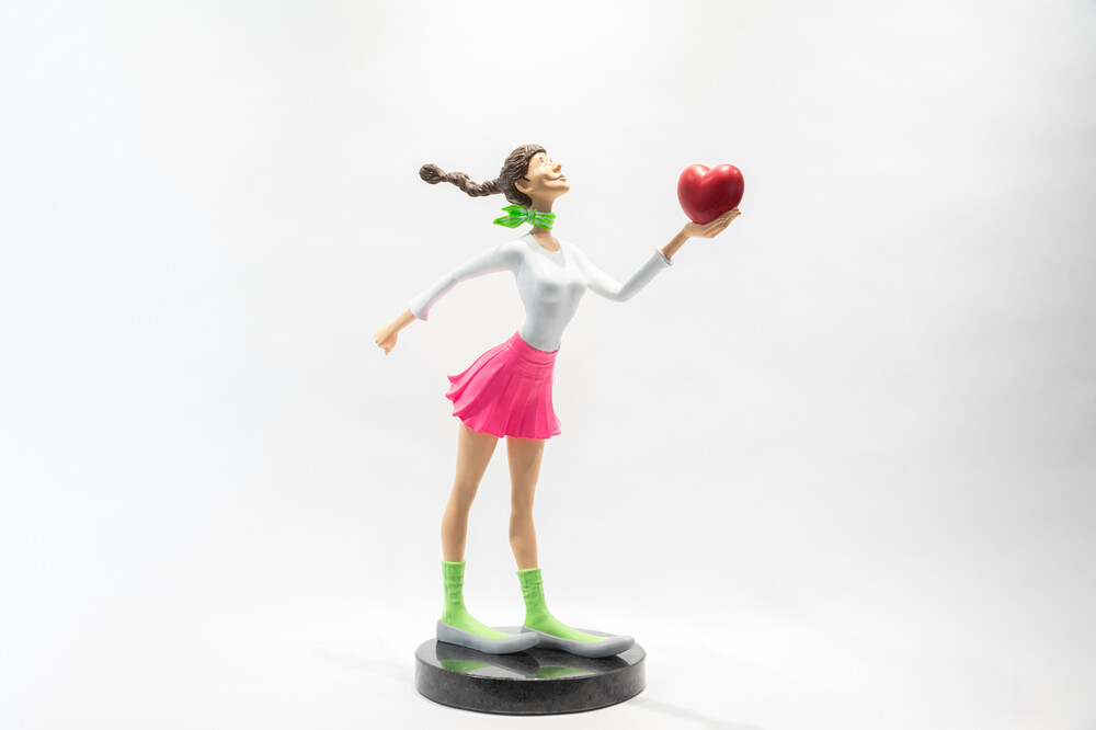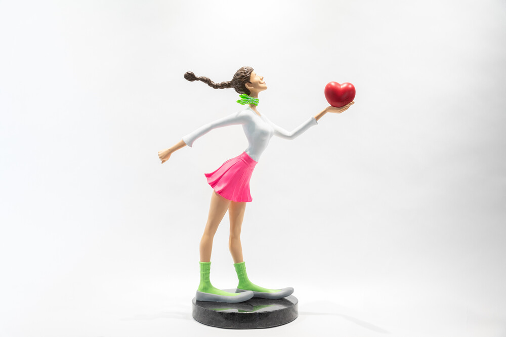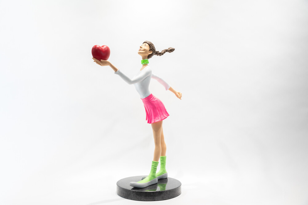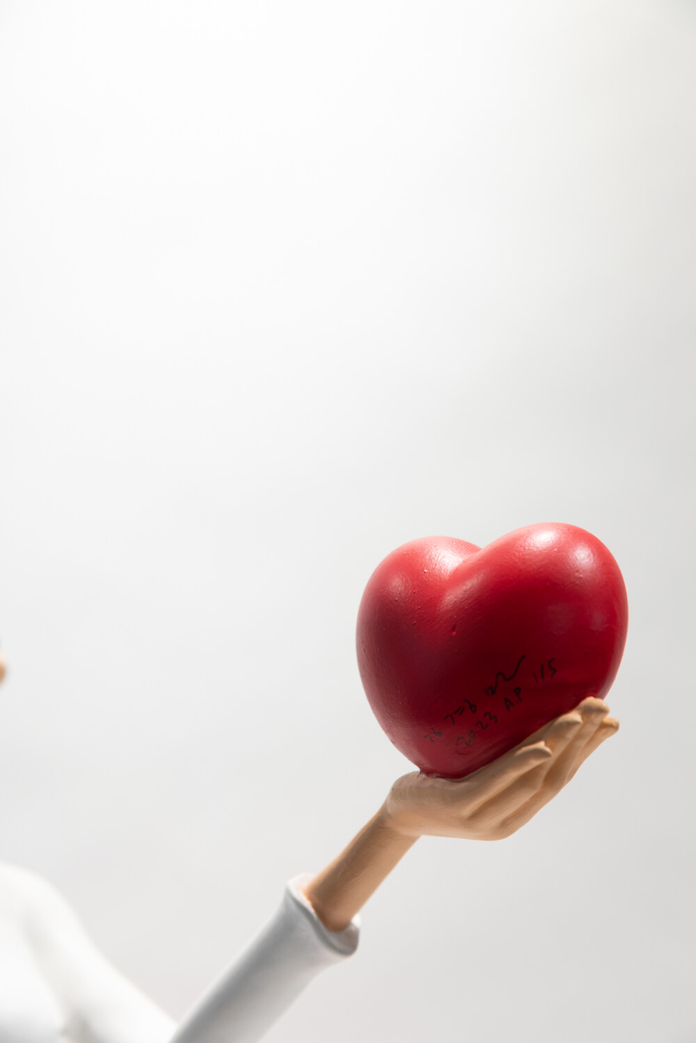 김경민 작가님의 < I LOVE YOU > 시리즈 두번째 작품입니다. 서로를 향한 사랑의 마음을 빨간색 하트를 건네며 적극적으로 전하는 두 남녀의 표정과 제스처가 돋보이는 작품입니다. 사랑하는 이에게 사랑한다는 고백을 할 때 충만한 행복을 느끼는 우리들의 모습이 담겨있습니다.