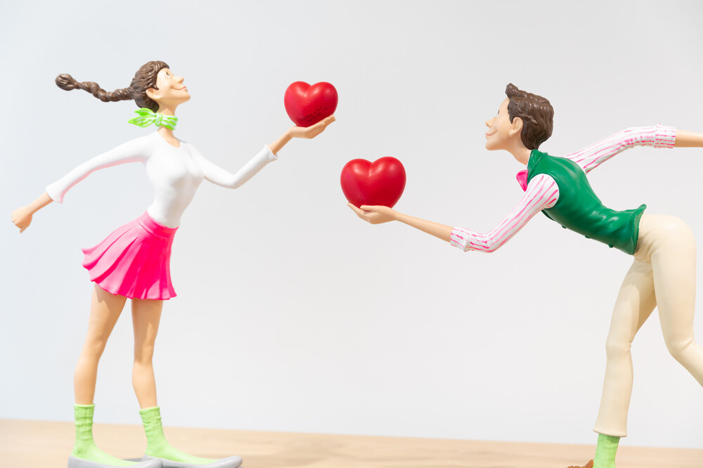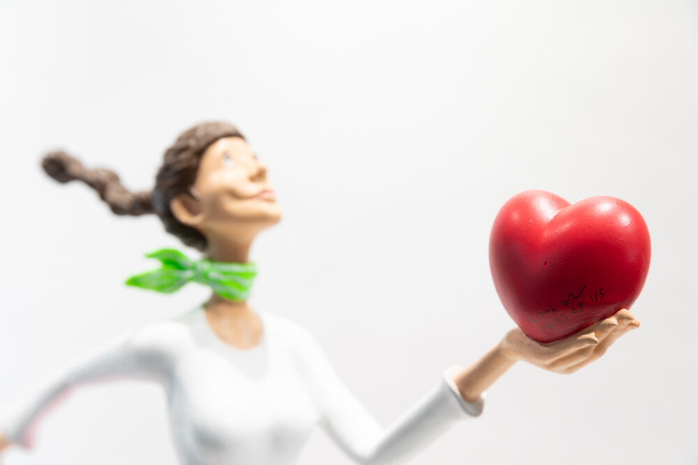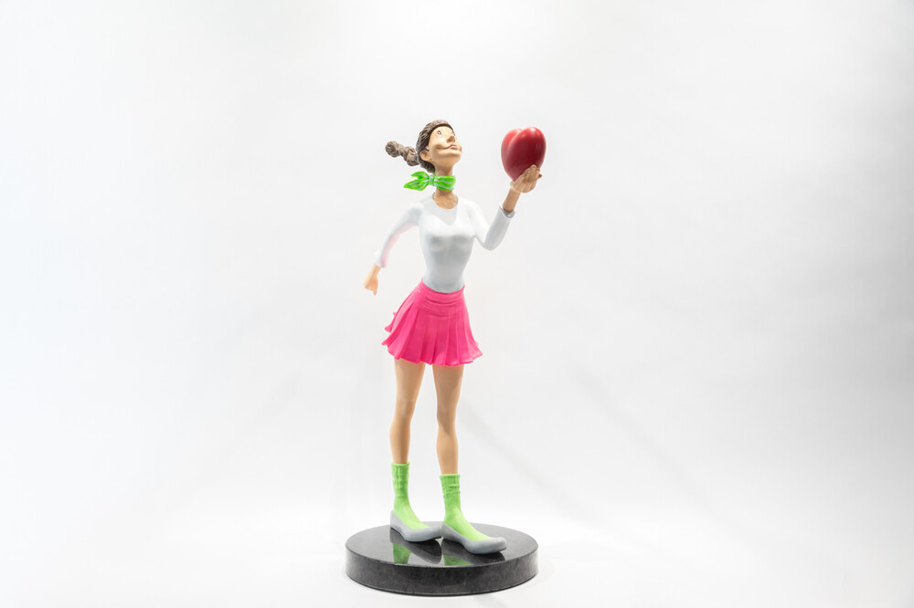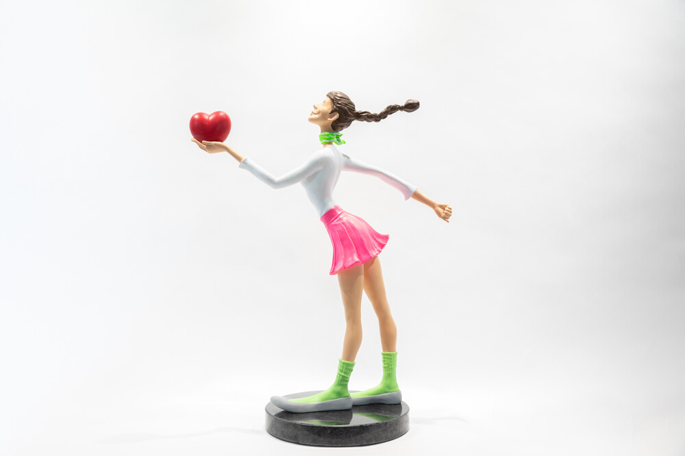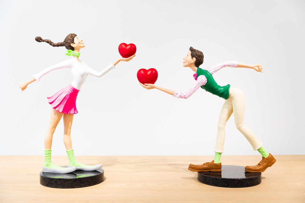 김경민 작가님의 < I LOVE YOU > 시리즈 두번째 작품입니다. 서로를 향한 사랑의 마음을 빨간색 하트를 건네며 적극적으로 전하는 두 남녀의 표정과 제스처가 돋보이는 작품입니다. 사랑하는 이에게 사랑한다는 고백을 할 때 충만한 행복을 느끼는 우리들의 모습이 담겨있습니다.