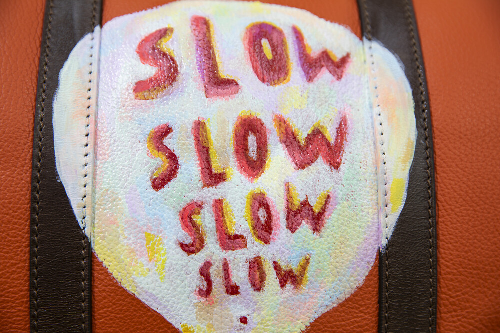 In this work, “SLOW” isn’t just a word—it’s a rhythm.Its fading repetition drifts like breath, inviting us to rethink our pace, our space, and how deeply we might need the stillness we so often avoid.
