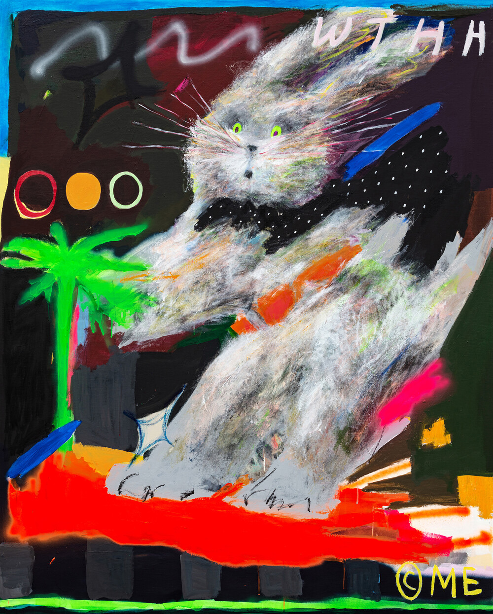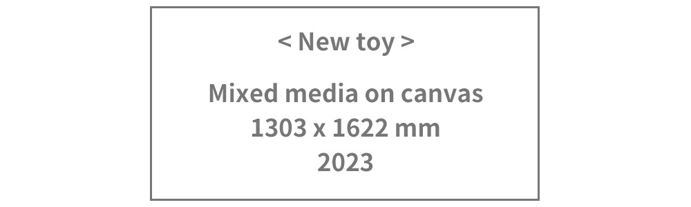 박소현 작가님은 즉흥적이고 순간적인 페인팅 기법과 키치하고 팝한 컬러와 무드로 표현한 사랑스러운 동물들을 의인화 하여 작가의 상상 속 기발한 이야기를 펼치고 있습니다. 캔버스 속 동물들은 관객에게 무엇인가를 이야기하고싶어하는 듯 한 느낌을 자아내어 보는 이의 호기심을 자극합니다. < New toy >는 당근으로 만든 킥보드를 새로운 장난감으로 갖게 된 토끼의 모습을 그린 작품입니다. 생각보다 킥보드의 속도가 빨라 흠칫 놀란 사랑스럽고 귀여운 토끼의 모습이 돋보이고 있습니다.