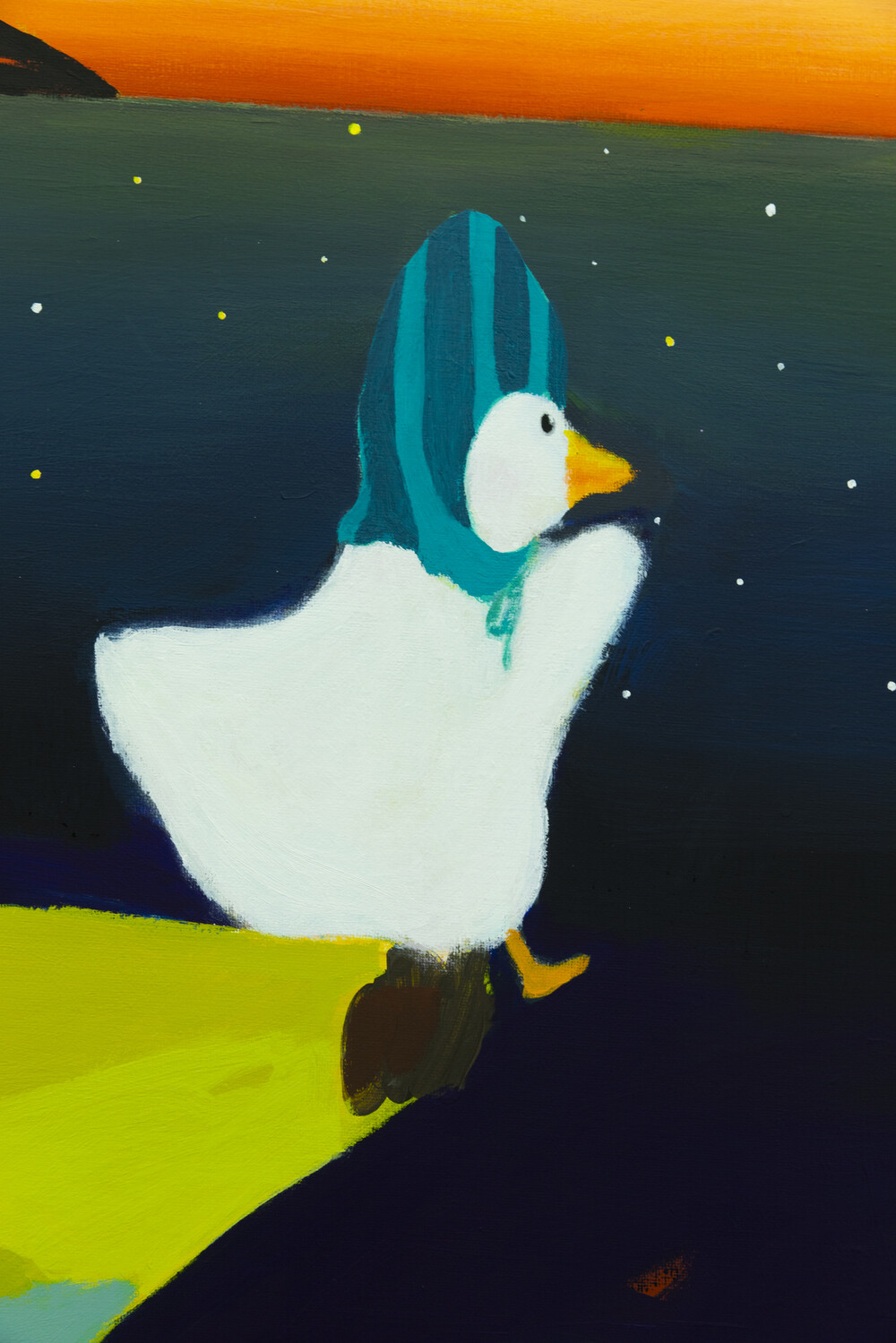 It might be a reflection of how easy it is to lose ourselves when we follow a fixed idea of success—when we try to fit into someone else’s story. The duck seems to be speaking not only to the dog, but also to the viewer.As if to say, “Your moon is somewhere else. It’s okay if it doesn’t look like anyone else’s.”