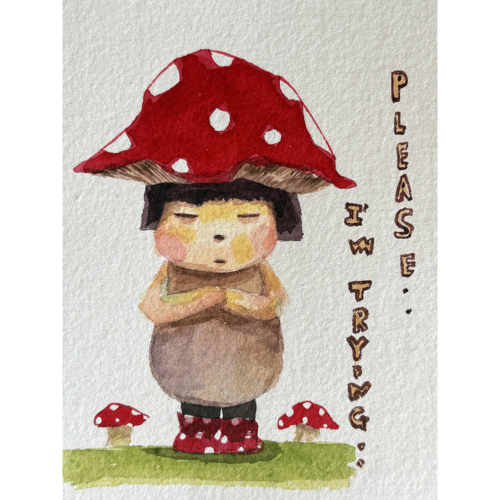 멈추지 않는 수많은 생각들 속에서 놓치기 쉬운 자아의 감정과 관계를 돌아보는 이번 전시는, 동물과 아이의 위트 있는 시선과 몸짓, 그리고 화면 위에 더해진 레터링을 통해 다양한 마음의 상태를 풀어냅니다.