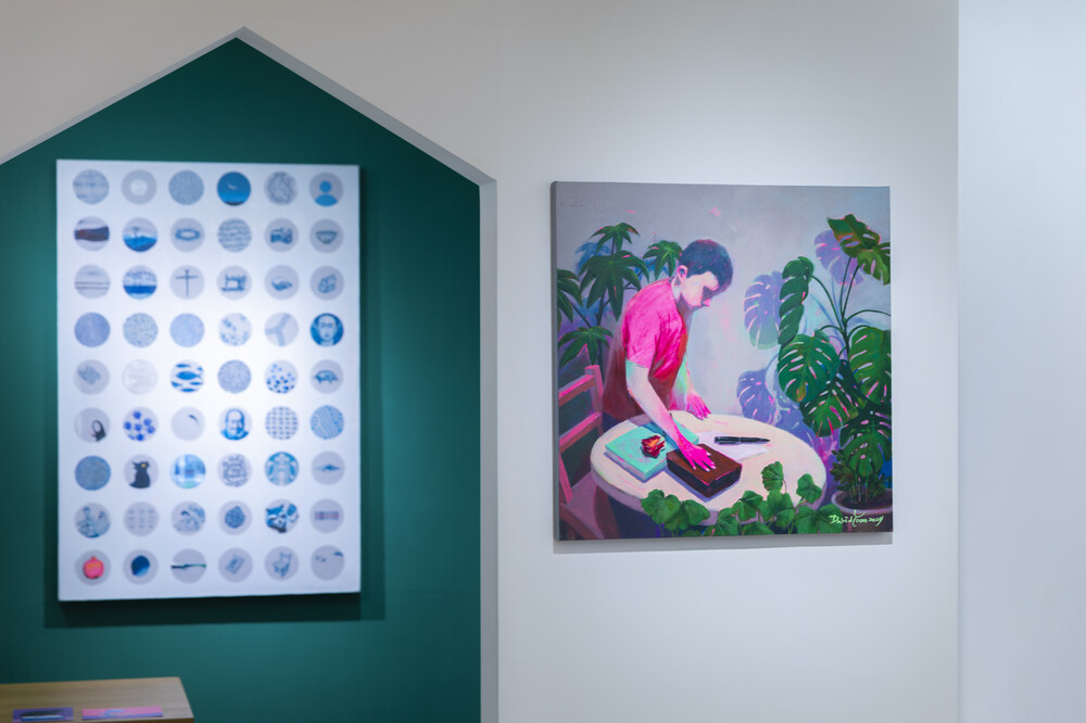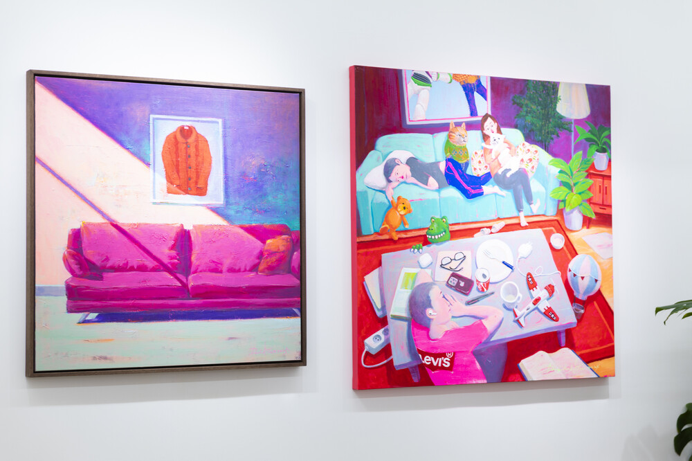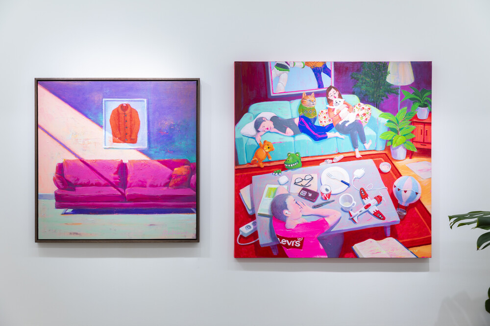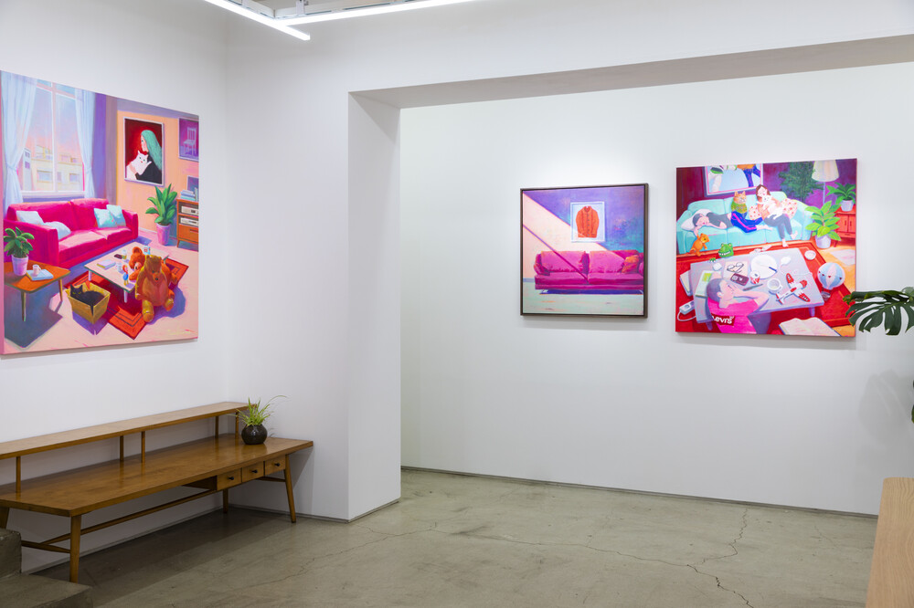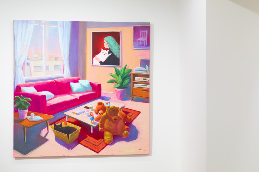 작업에 등장하는 가족, 평안한 거실, 오래된 골목길, 식물, 고양이, 오래된 장난감 등은 오랜 시간 동안 작가와 함께하며 위로와 위안을 주었던 기억, 사물 들이다.