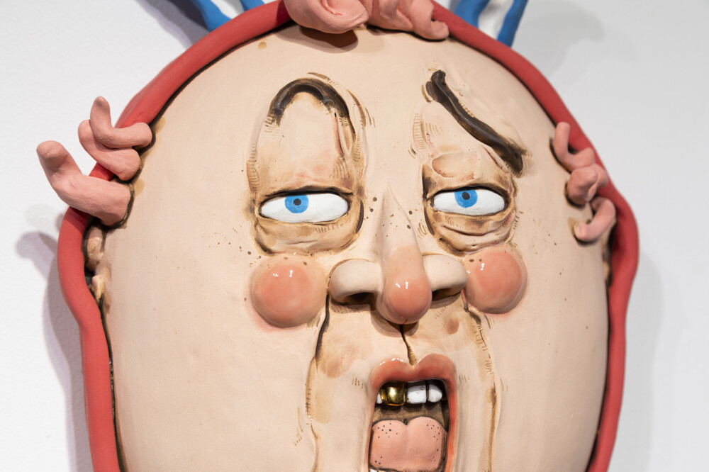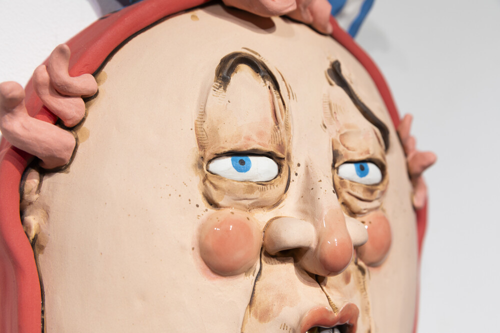 유재연 작가의 <자아도취>는 내면의 깊은 대화를 통해 자신을 어루만지는 성찰의 순간을 시각적으로 형상화한 작품입니다. 보여지는 모습에 집중하며 느꼈던 피로감 속에서, 스스로의 본질을 들여다보는 시간을 통해 위안을 얻습니다. 익살스럽고 과장된 표정의 조각은 어쩌면 불완전해 보이지만, 그것이야말로 작가가 마주한 자신의 솔직한 모습입니다.