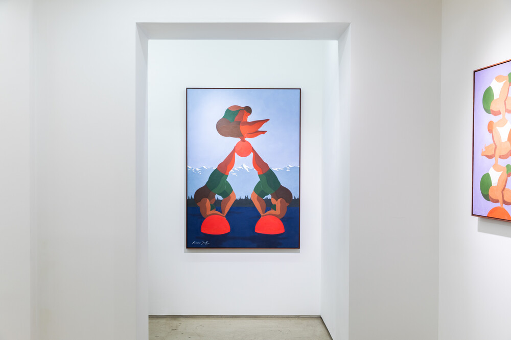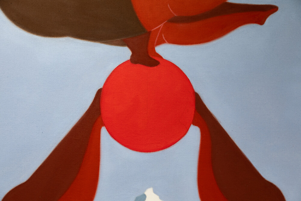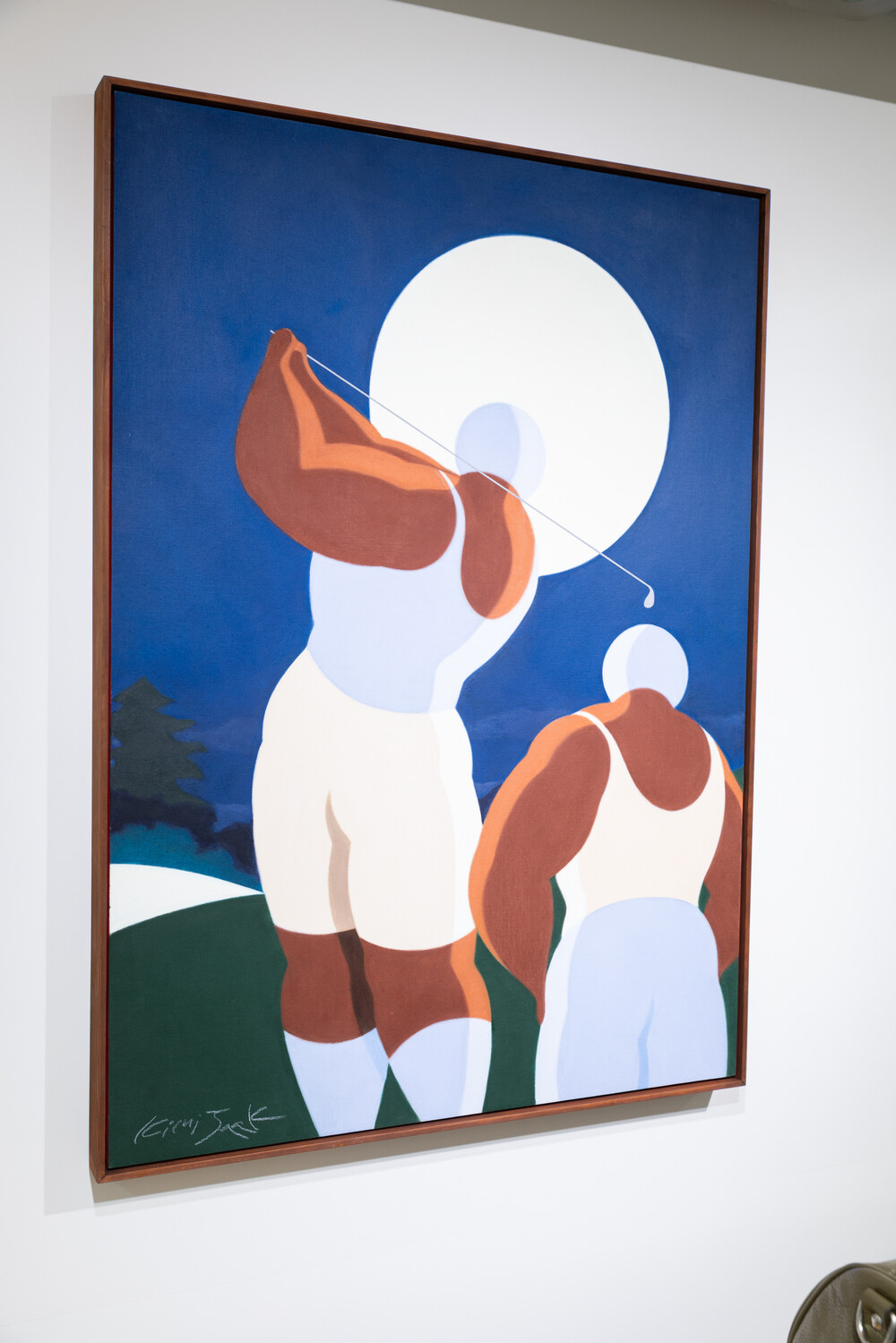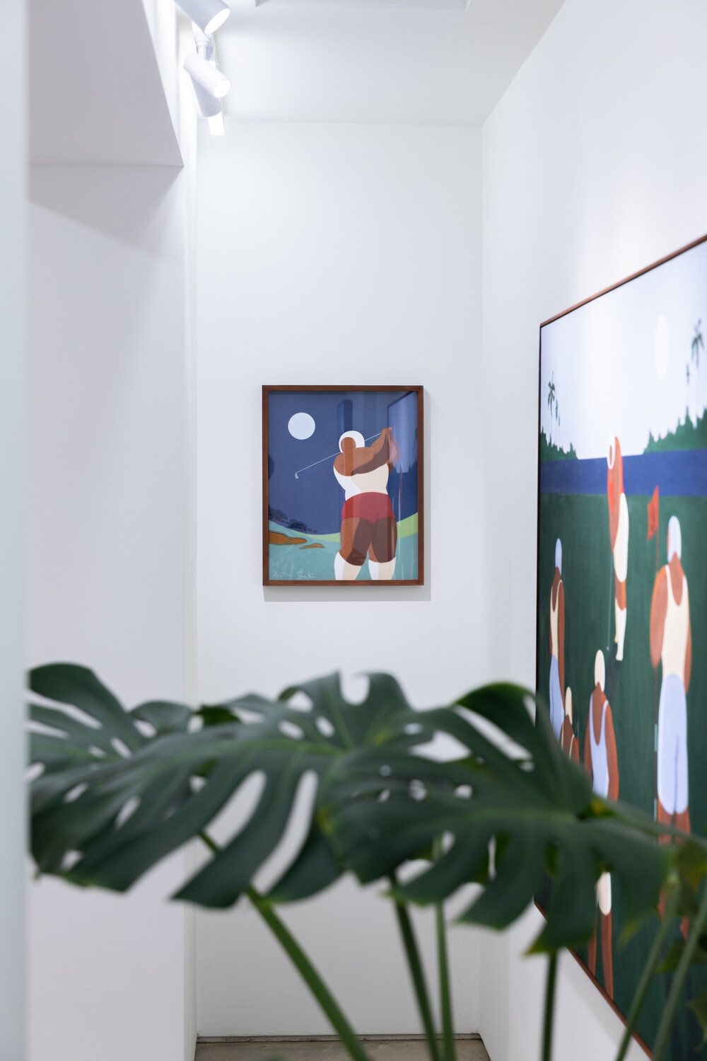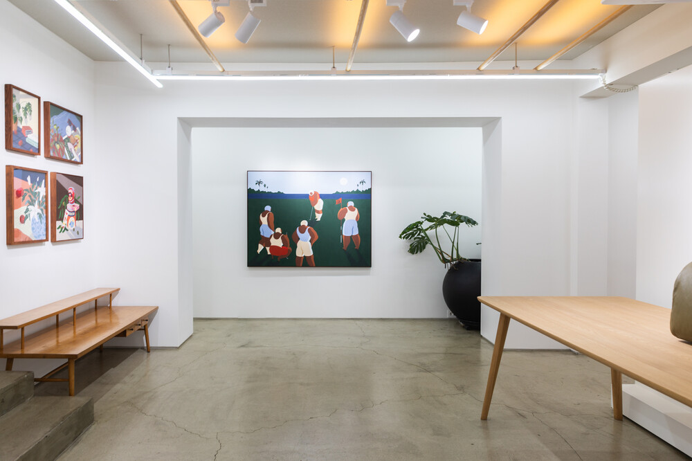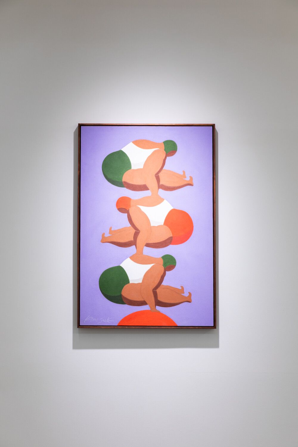 The artist painted this while recalling moments shared with a child. The objects on the table are not merely things, but carriers of family tastes and memories. The Mickey Mouse doll was a childhood favorite of the artist, while the tomatoes are what the child particularly dislikes. The doll’s expression seems almost to echo that feeling.