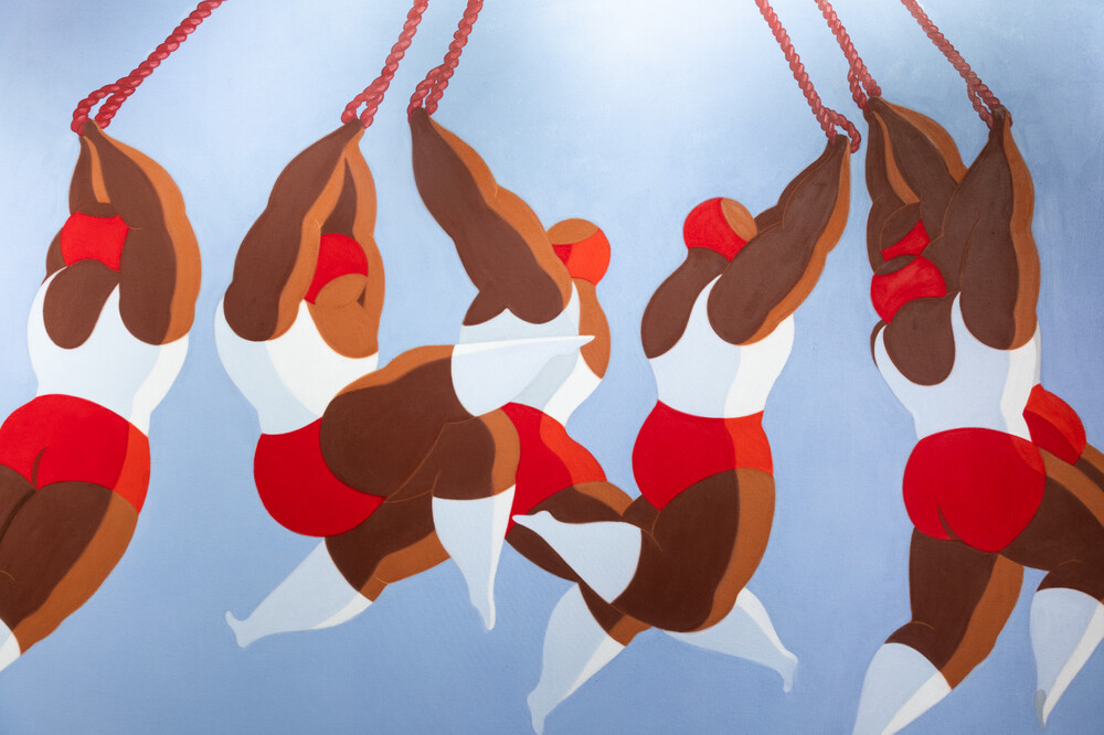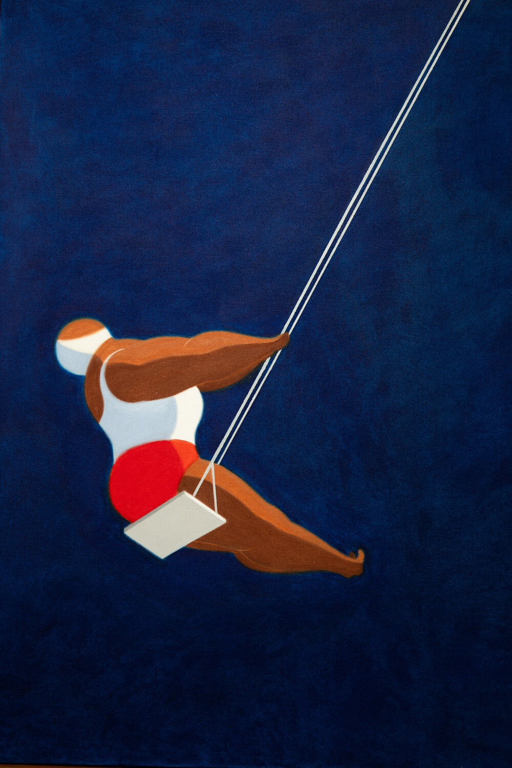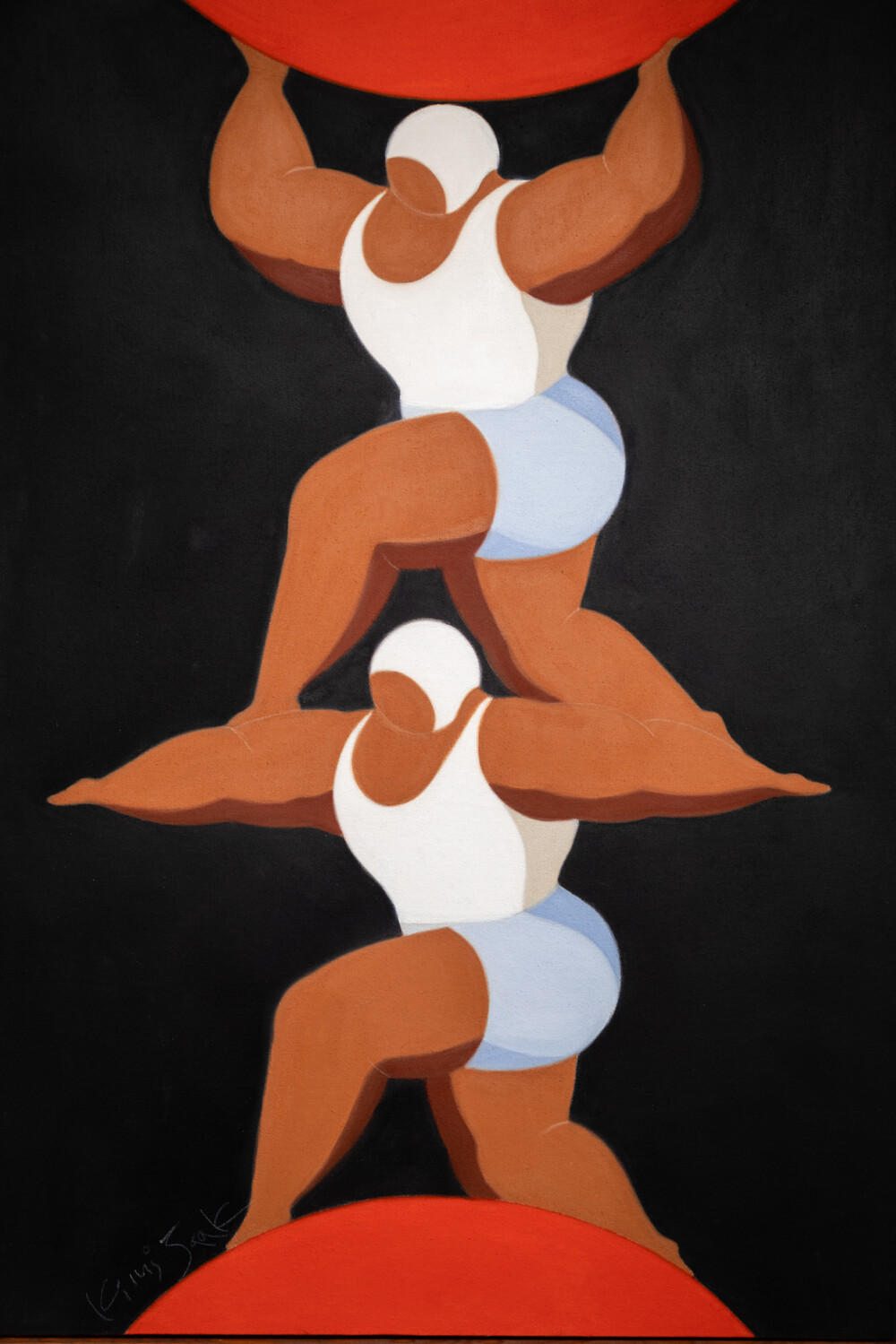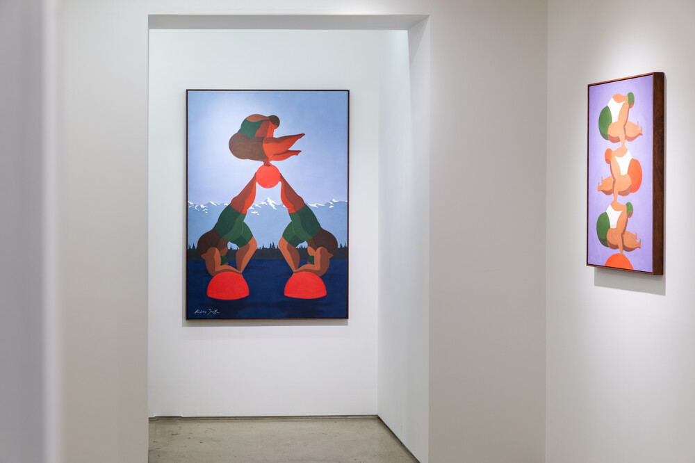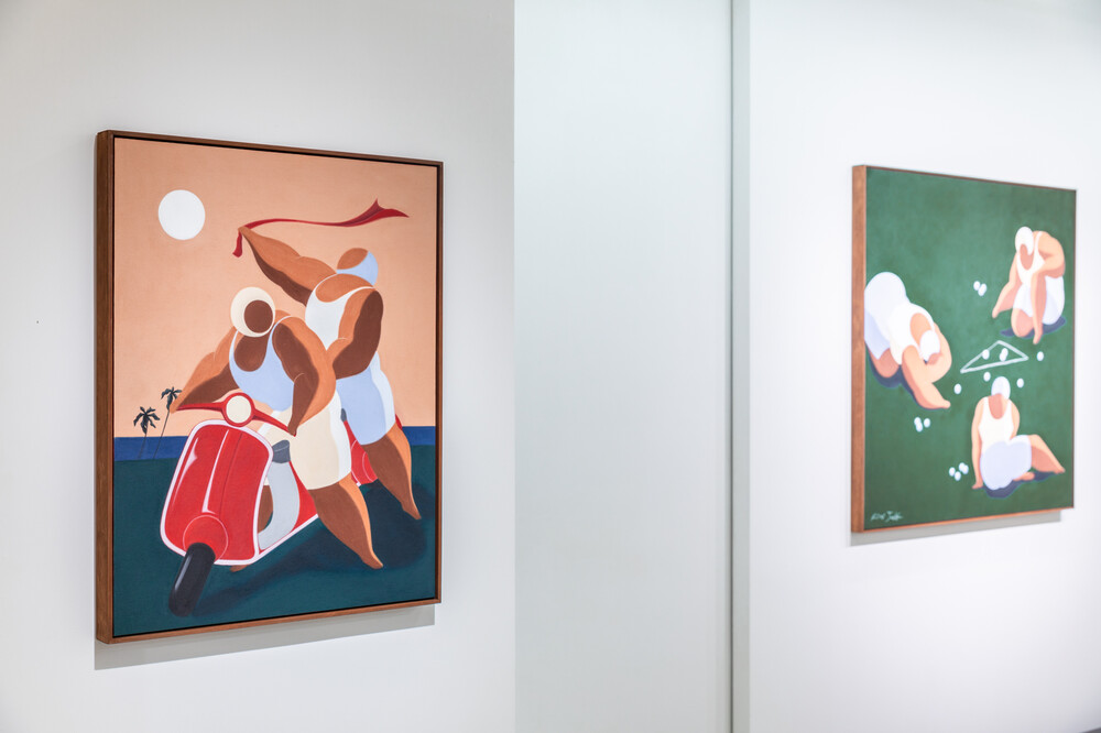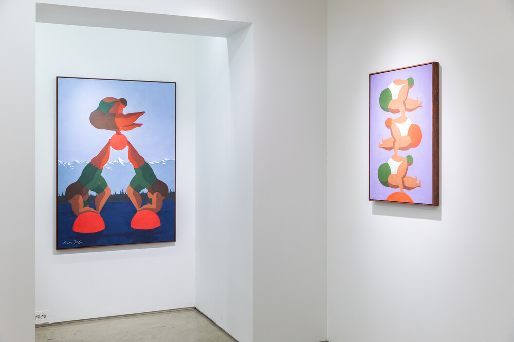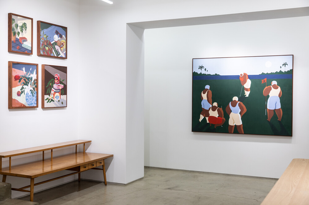 The artist painted this while recalling moments shared with a child. The objects on the table are not merely things, but carriers of family tastes and memories. The Mickey Mouse doll was a childhood favorite of the artist, while the tomatoes are what the child particularly dislikes. The doll’s expression seems almost to echo that feeling.