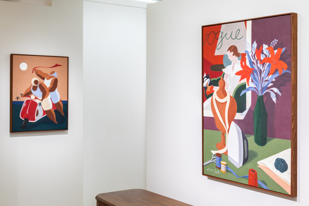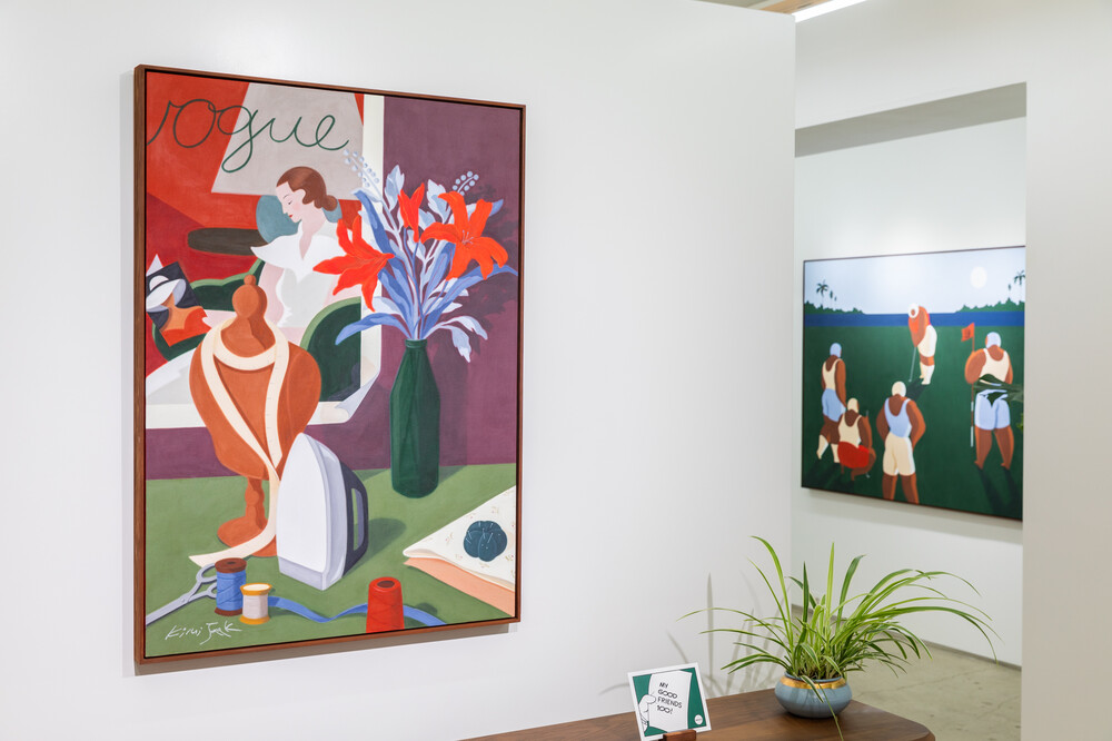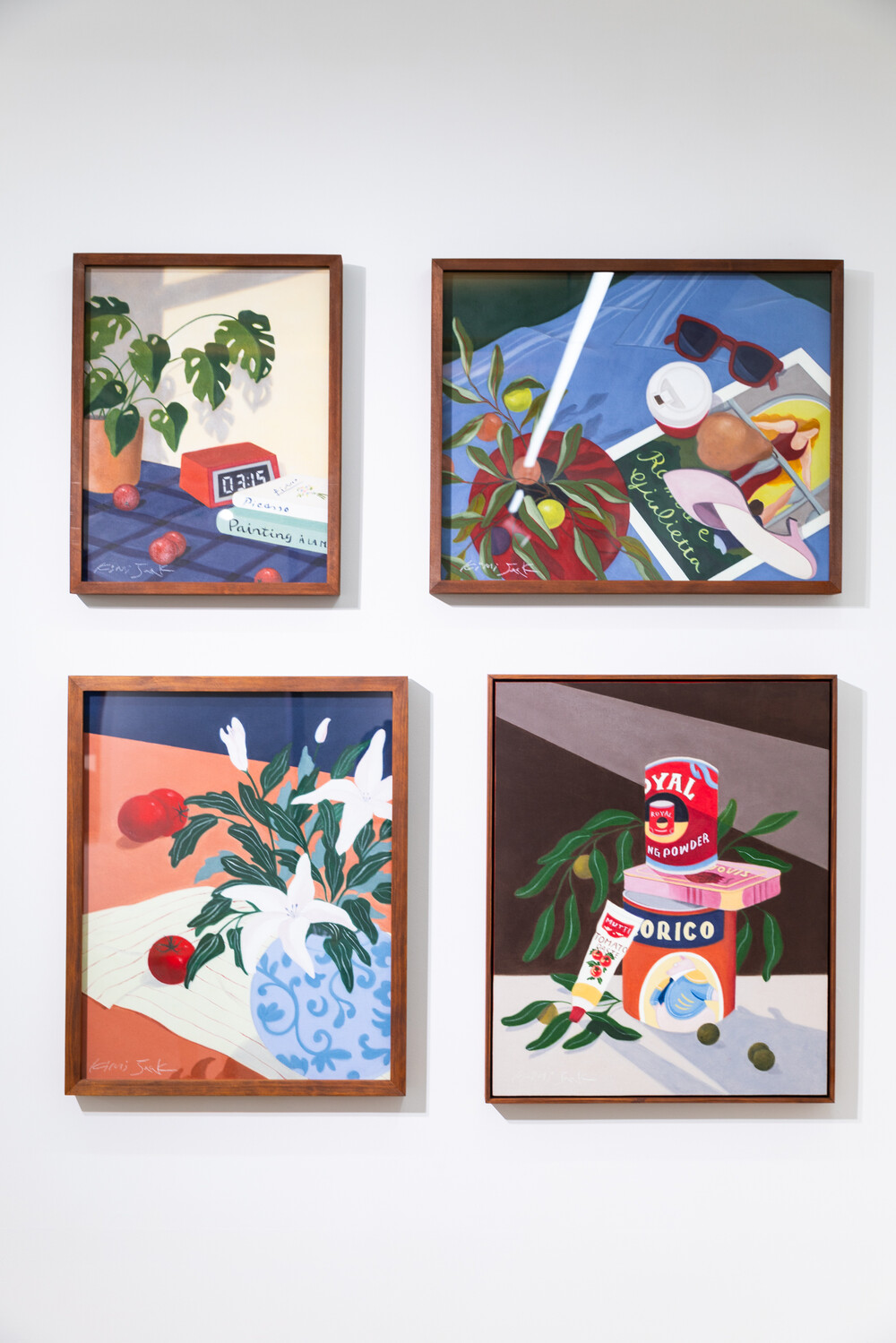 작가는 아이와 함께한 순간을 떠올리며 이 장면을 그렸습니다. 테이블 위 사물들은 단순한 물건이 아니라 가족의 취향과 기억을 담고 있습니다. 미키마우스 인형은 작가가 어린 시절부터 좋아하던 것이고, 토마토는 아이가 유독 싫어하는 것입니다. 인형의 표정은 마치 그 마음을 대신 보여주는 듯합니다.