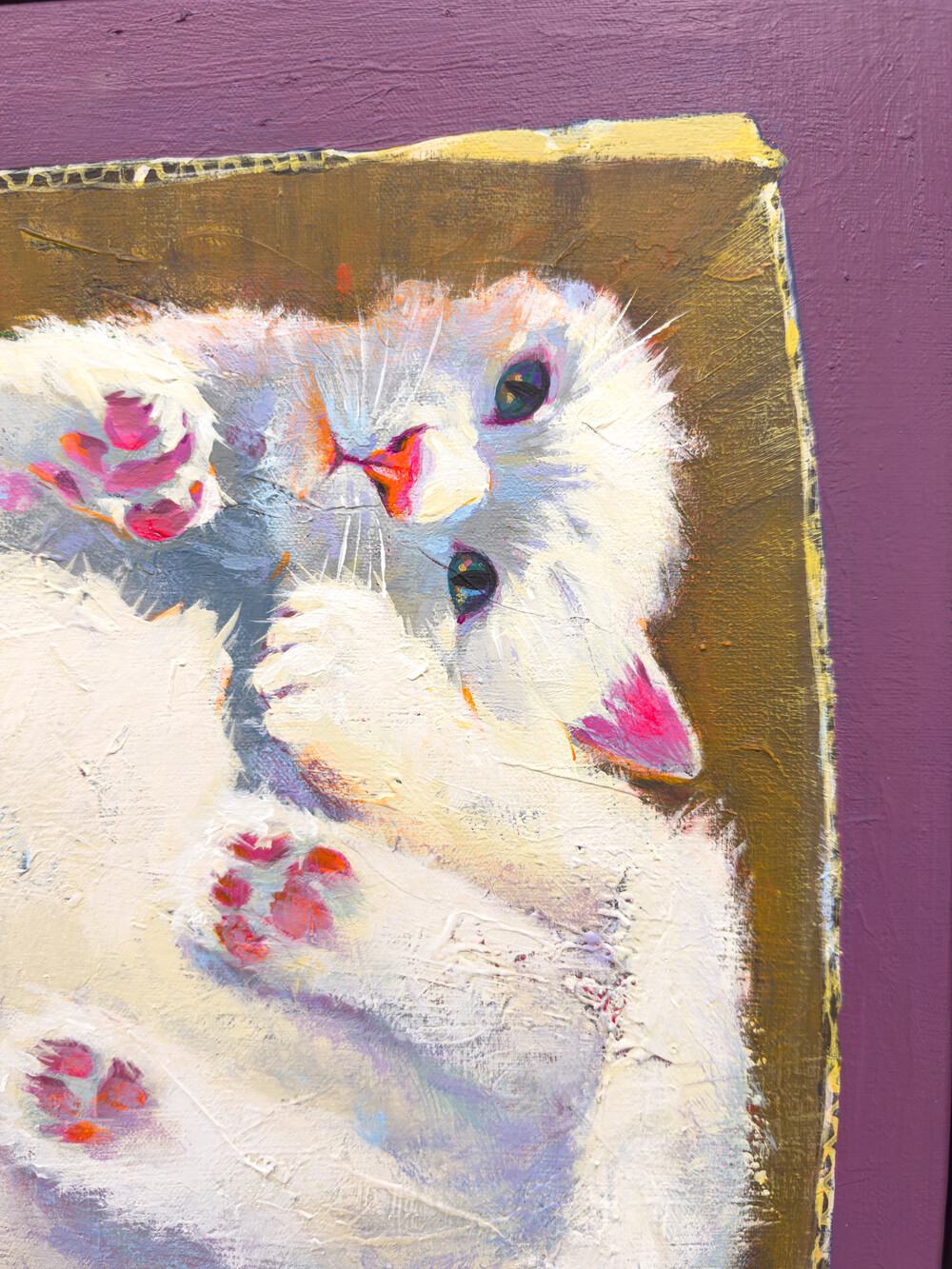작업에 등장하는 가족, 평안한 거실, 오래된 골목길, 식물, 고양이, 오래된 장난감 등은 오랜 시간 동안 작가와 함께하며 위로와 위안을 주었던 기억, 사물 들이다.