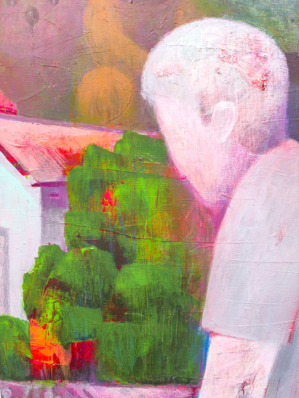 작업에 등장하는 가족, 평안한 거실, 오래된 골목길, 식물, 고양이, 오래된 장난감 등은 오랜 시간 동안 작가와 함께하며 위로와 위안을 주었던 기억, 사물 들이다.