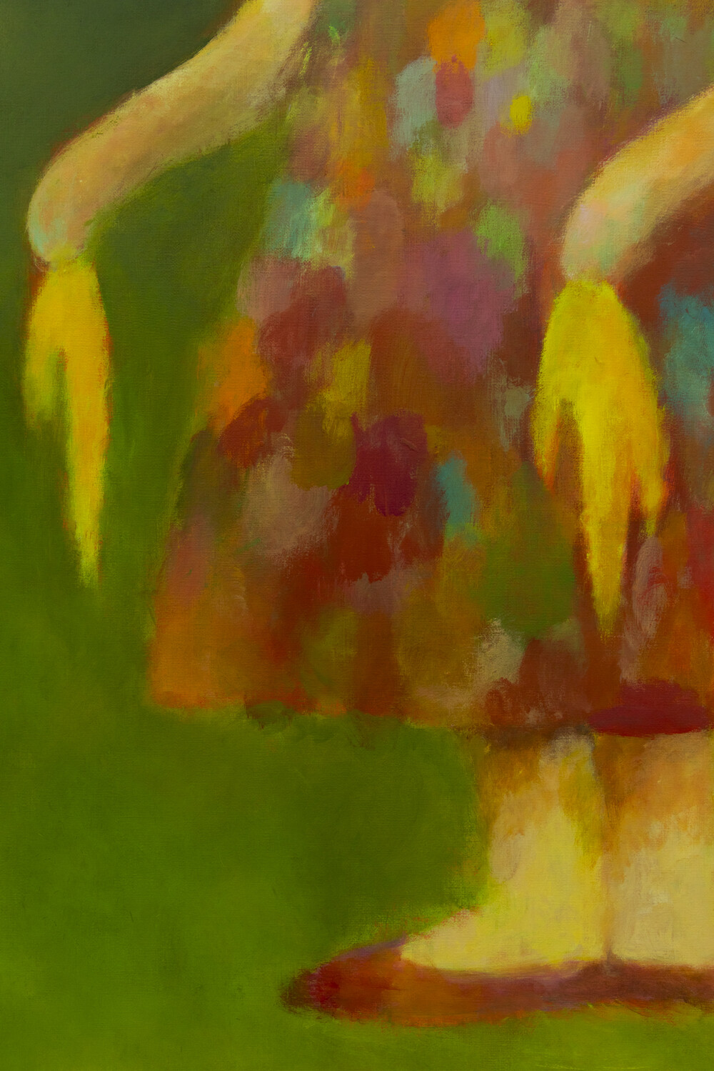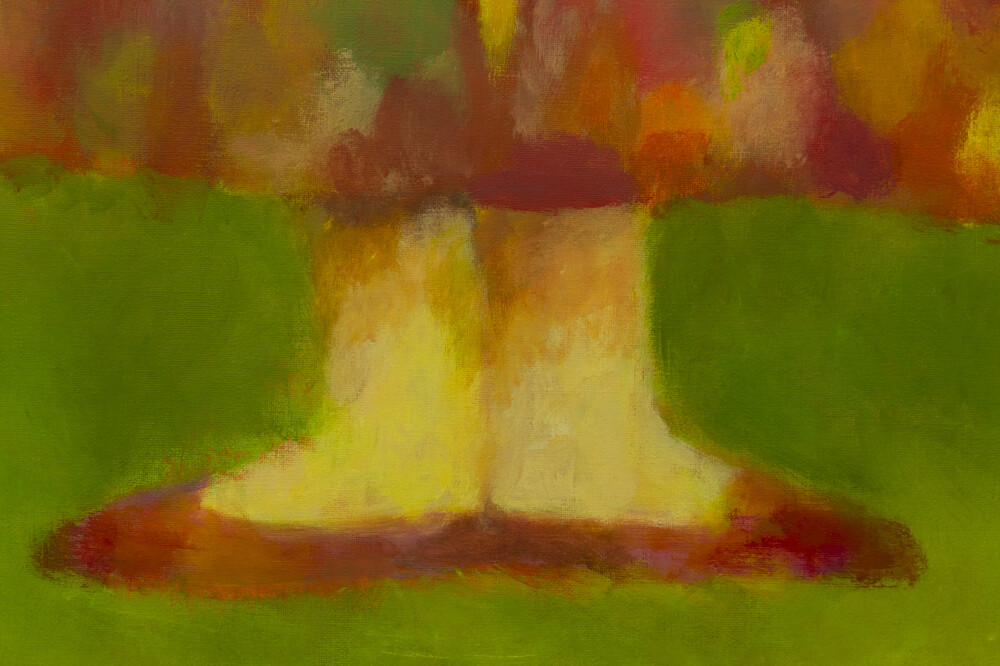 The colors are layered and softened. Borders blur. The brush never fully stops, letting the pigments bleed and expand across the surface. Undefined emotions ripple outward. There’s no clear direction. No event unfolds. But that stillness—that blank, lingering moment—is the heart of the painting.